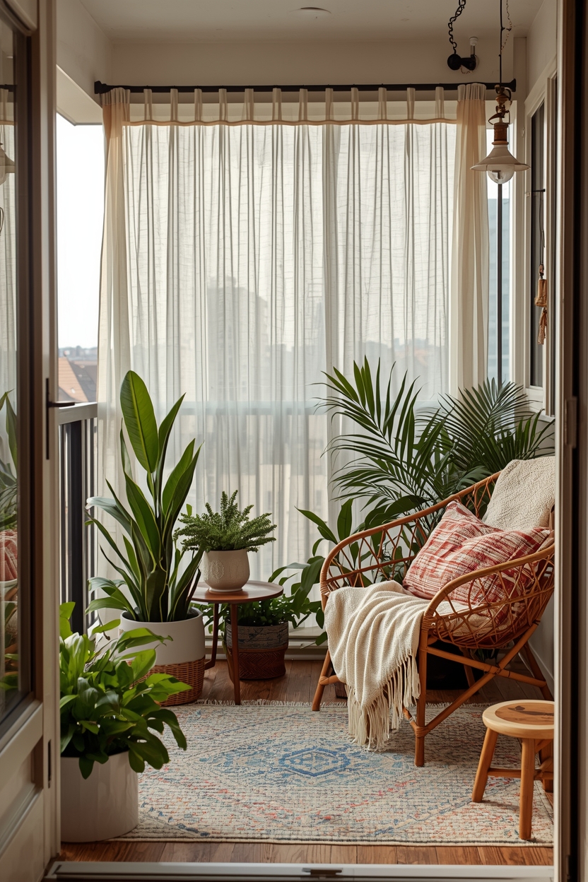 ALT Text: Vertical greenery on boho balcony creating lush look