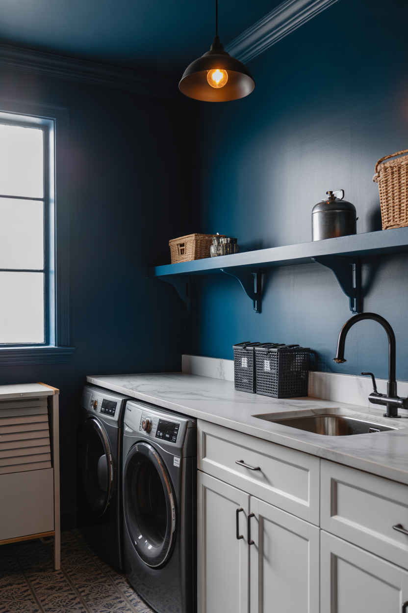 That’s where dark blue makes all the difference. It brings a rich, cozy vibe without feeling too heavy or dull. The moment you add it, the whole space starts to feel more designed and intentional. Whether it’s a full makeover or just a quick weekend refresh, this color can turn your laundry room into a space you genuinely enjoy spending time in.