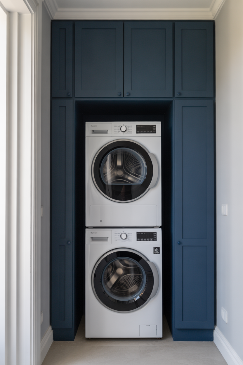 Navy Stacked Washer and Dryer Alcove