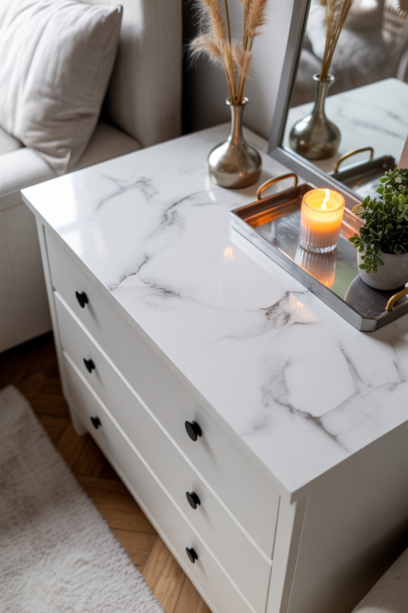 Just apply it carefully on top of your dresser, and suddenly it feels like a designer piece. I’ve used this before, and yeah—it’s a little tricky at first, but worth it.