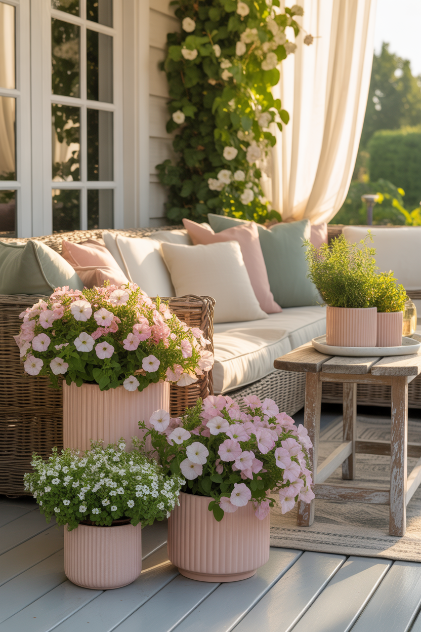 Creating a color-coordinated theme can make your porch look instantly polished and visually pleasing. Instead of mixing too many shades, choose one main color and build around it. For example, a pink-themed porch with different tones—from soft blush to deep rose—feels cohesive and elegant.