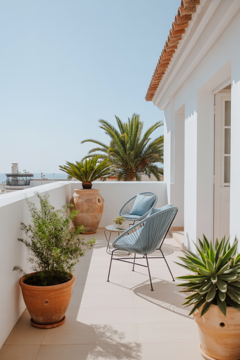 11. Mediterranean White & Earthy Balcony