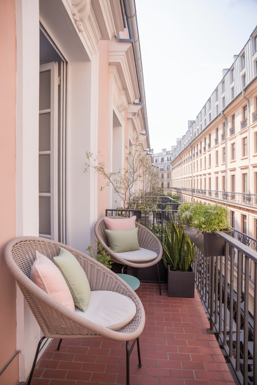 Using soft pastel colors is a great way to make your balcony feel calm and fresh. Shades like blush pink, soft green, cream, and light beige work beautifully in spring. These colors reflect light and make your space look bigger and brighter.