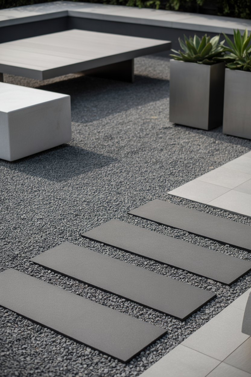 3. Modern Minimalist Gravel Patio with Clean Lines