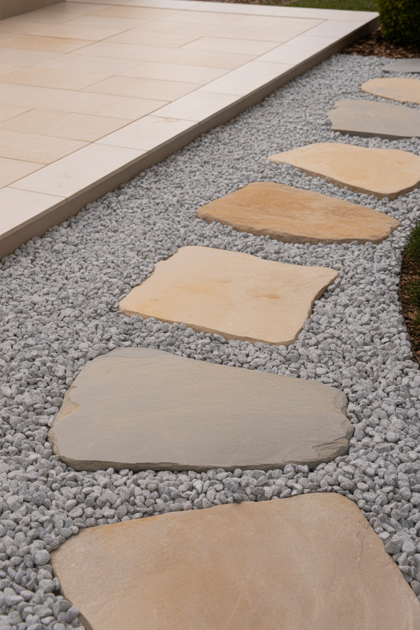 • Add large concrete slabs for contrast with gravel