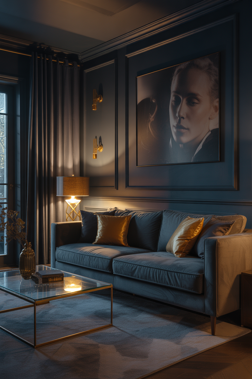 A midnight navy wall instantly brings depth and luxury into your living room. It creates a calming yet dramatic backdrop that makes every decor piece stand out. When paired with warm lighting, the space feels rich and cinematic.