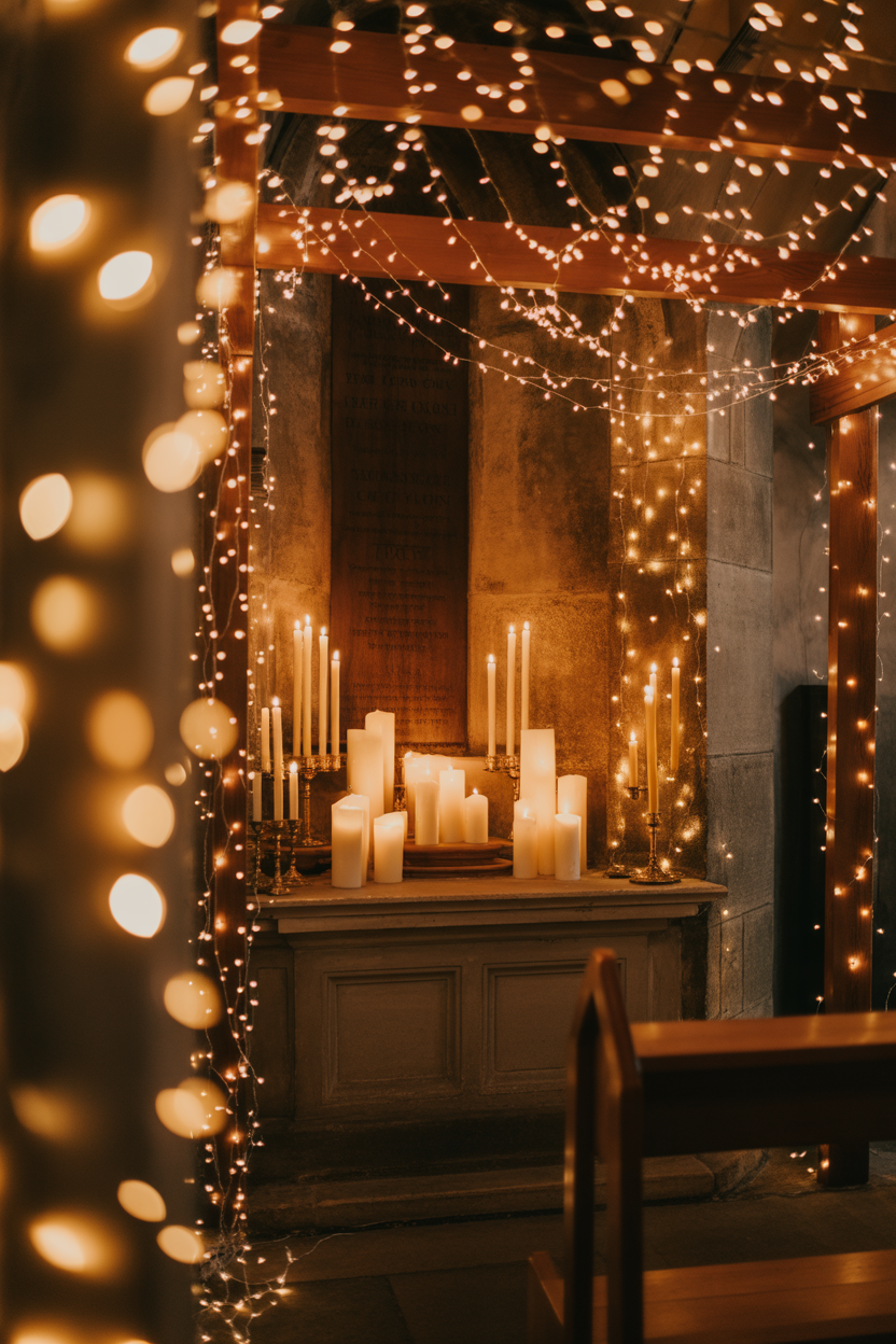 Lighting can completely change the look and feel of your decoration. Soft fairy lights and candles create a warm and cozy atmosphere that feels emotional and peaceful.