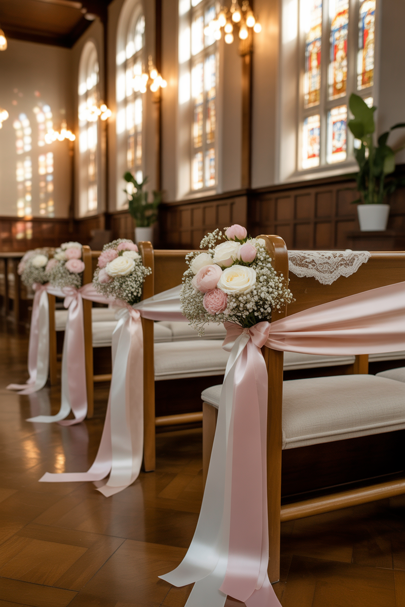 You don’t have to use fresh flowers if they are expensive—artificial flowers can look just as stunning. Adding a bit of greenery makes the design feel more natural and refreshing. This idea is simple, yet it gives a premium and elegant look that works in any church setting.