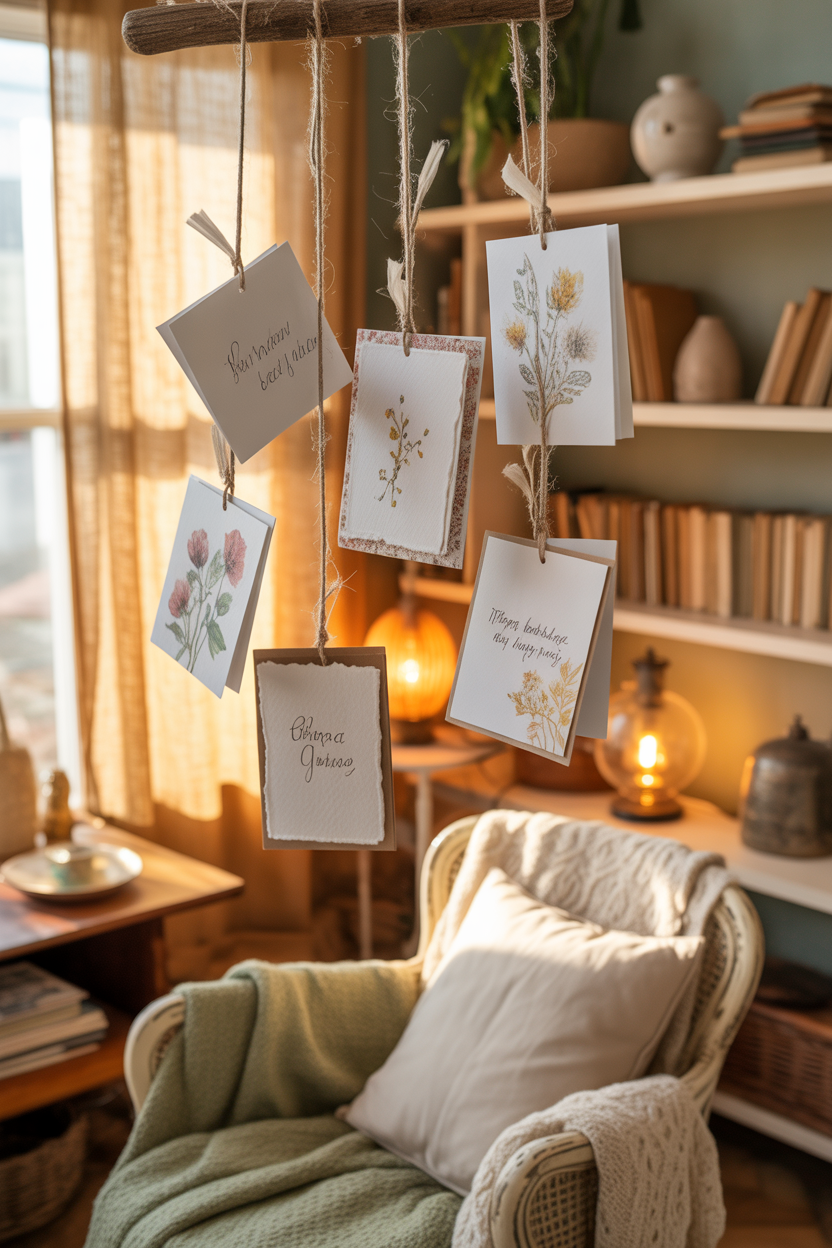 Styling Tip: Hang cards using string and clips for creative display.