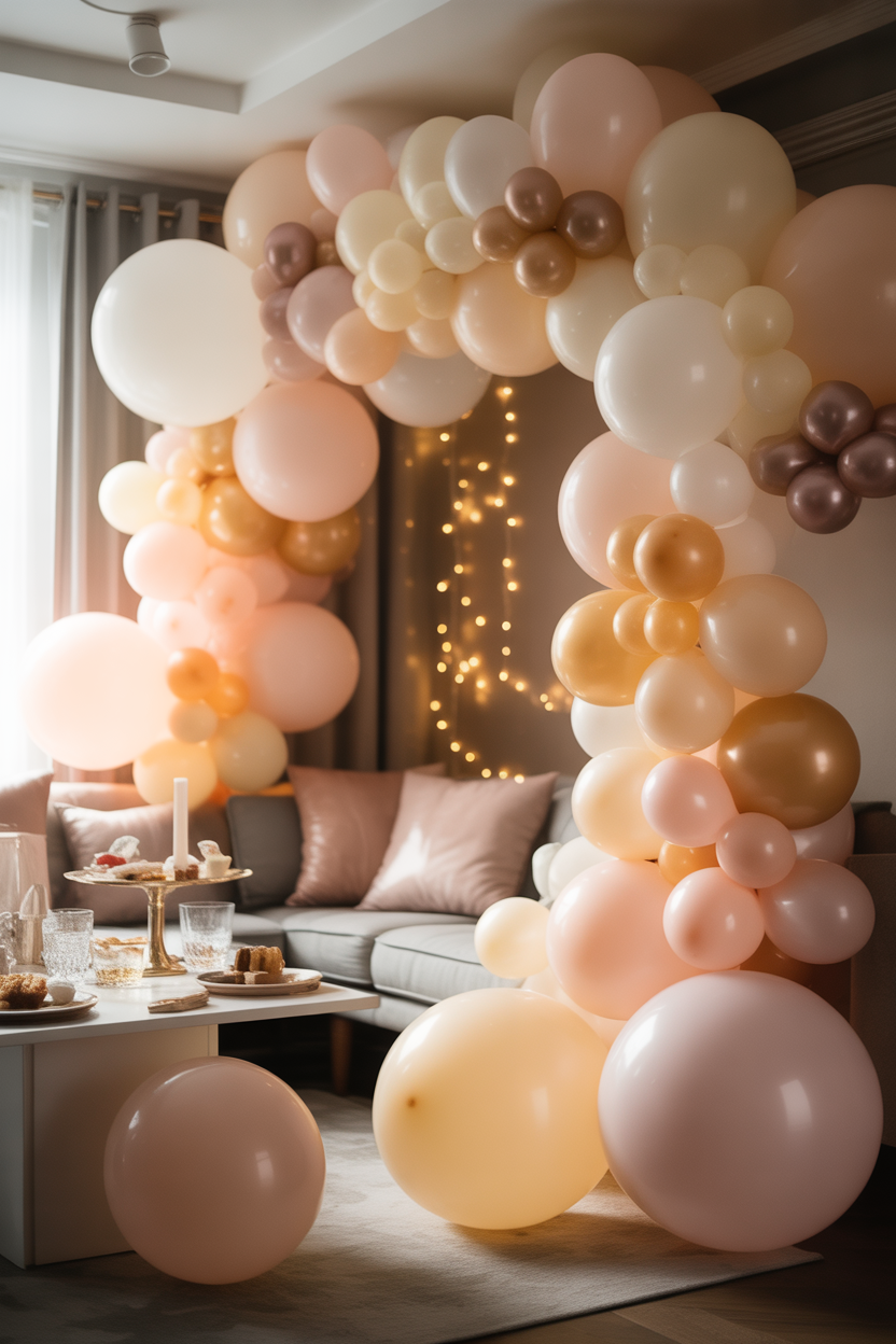 Place balloons on walls or behind a table and mix them with fresh or artificial flowers. This creates a natural and stylish backdrop for photos or a celebration space. Even a small setup can look beautiful if arranged properly.