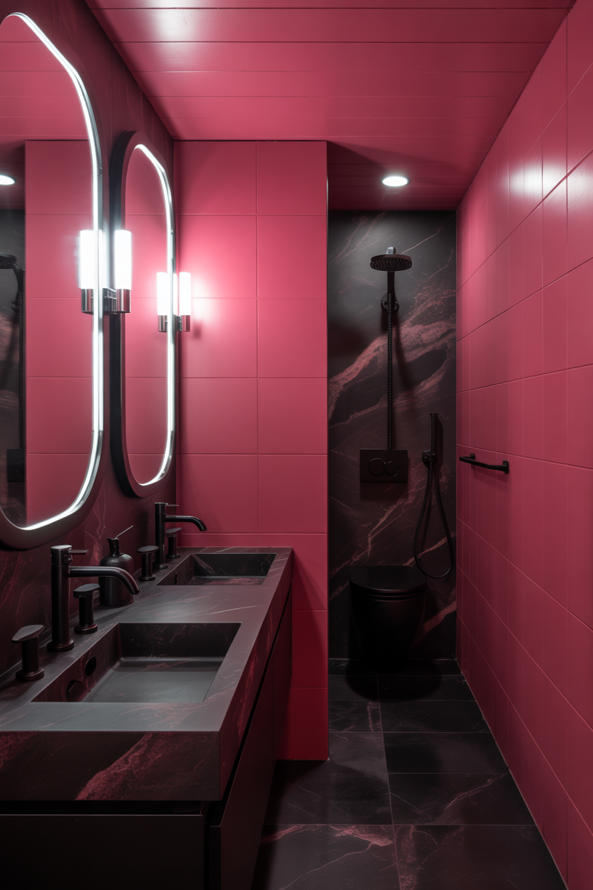 Pink and Black Contrast Bathroom Look