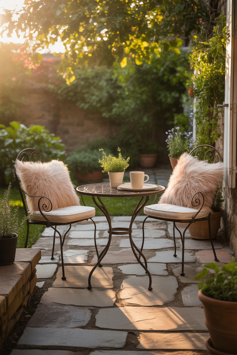The beauty of flagstone adds a natural, calming touch that pairs perfectly with slow mornings. Add a few plants and soft cushions to make the area feel warm and inviting. It’s a simple idea, but it can completely change how you use your outdoor space.