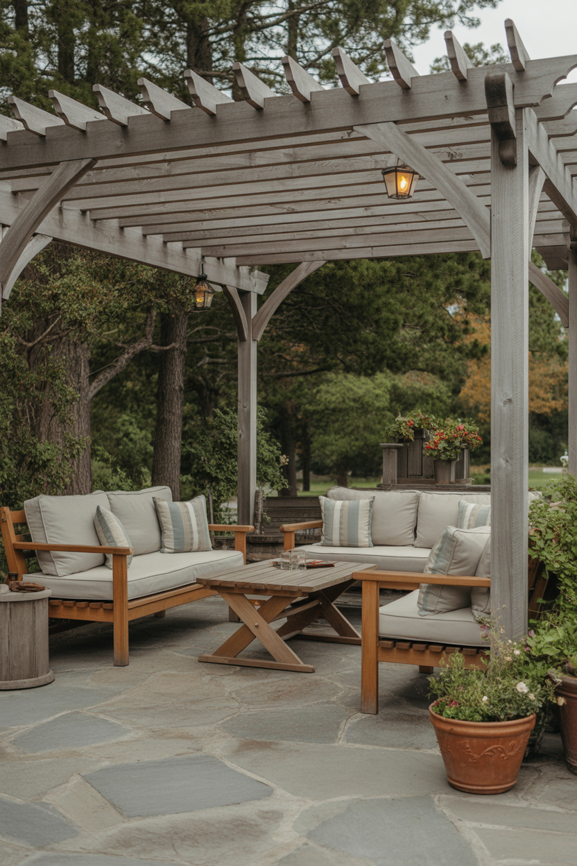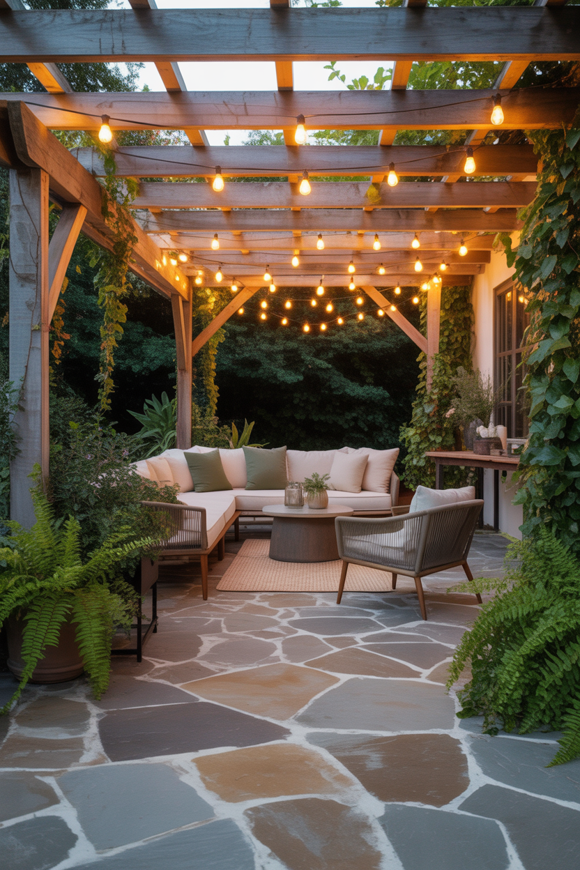 Adding a pergola over your flagstone patio creates structure and comfort. It provides shade during the day and makes the space feel more defined and stylish.